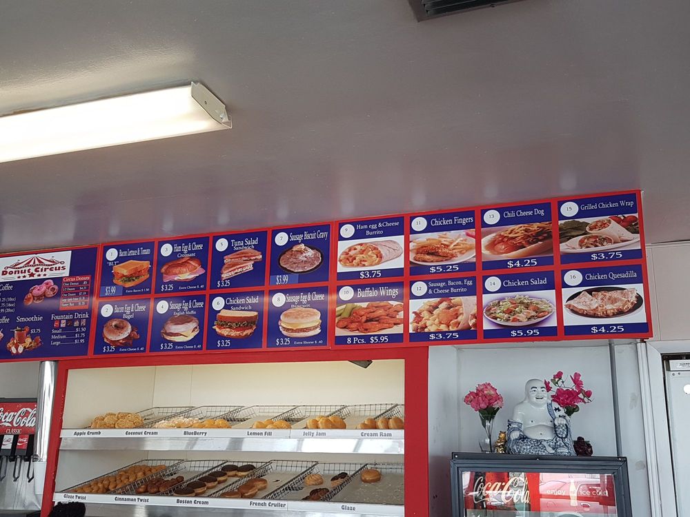 Introducing the menu at Donut Circus, a beloved donut spot located at 2040 S US Hwy 1 Fort Pierce, FL 34950. This charming establishment offers a variety of delectable donuts and sandwiches that keep customers coming back for more. With a cozy atmosphere adorned with original 50s diner furnishings, it's the perfect place to enjoy a tasty meal with family and friends. Customers rave about the mouthwatering chicken tenders, tater tots, and breakfast sandwiches. The donuts are a definite standout, with generous portions and exceptional taste that make them a must-try. The friendly owner adds a personal touch, sharing great stories and creating a welcoming environment. Donut Circus also provides convenience with takeout, delivery, and a drive-thru option. Affordable prices, fresh food, and top-notch service complete the dining experience at this Mom and Pop gem.